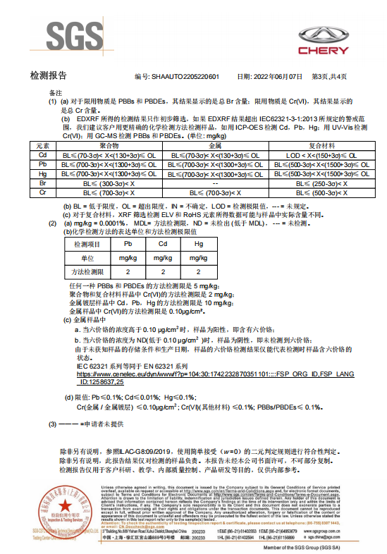 SGS 检测报告